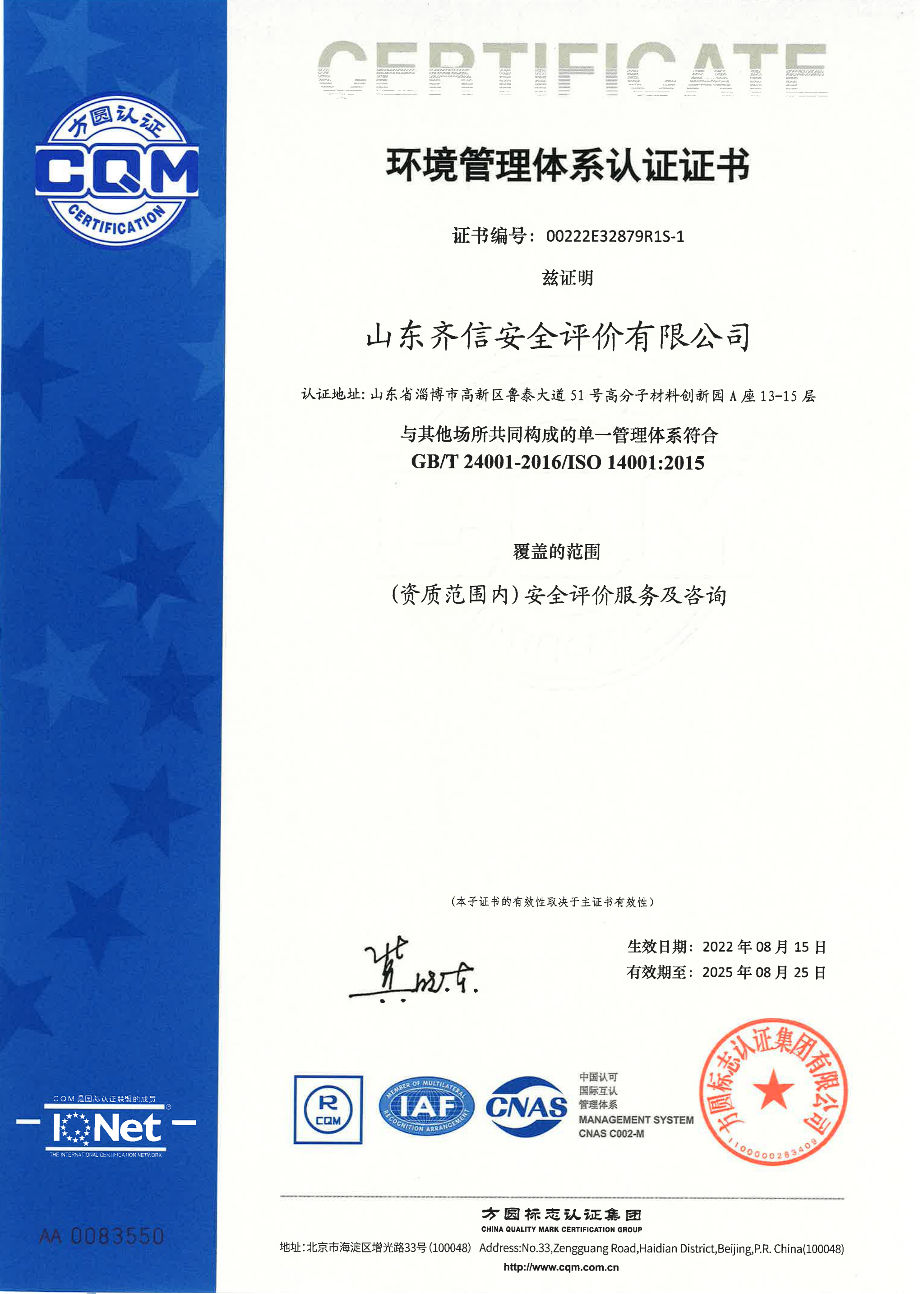 山東齊信安全評價有限公司成立于2005年3月,注冊資本300萬元人民幣,固定資產總值804.8728萬元。法定代表人徐光明,注冊地址及辦公地址位于淄博高新區魯泰大道51號高分子材料創新園A座13-15樓。2005年9月取得安全評價機構乙級資質。自國家應急部1號令實施以來,公司于2020年1月15日取得新安全評價資質,業務范圍包括:陸上油氣管道運輸業;石油加工業,化學原料、化學品及醫藥制造業;金屬冶煉。2018年12月21日取得安全生產標準化二級評審單位,評審范圍:危險化學品、紡織、建材、輕工、冶金、機械。 公司現有人員41人,其中專職安全評價師37人,注冊安全工程師26人,研究員1人、碩士5人、雙學士1人,山東省安全專家庫專家1人、教授級高工1人,高級工程師8人、工程師22人,專職危險化學品標準化評審員、工商貿標準化評審員30人,本科以上學